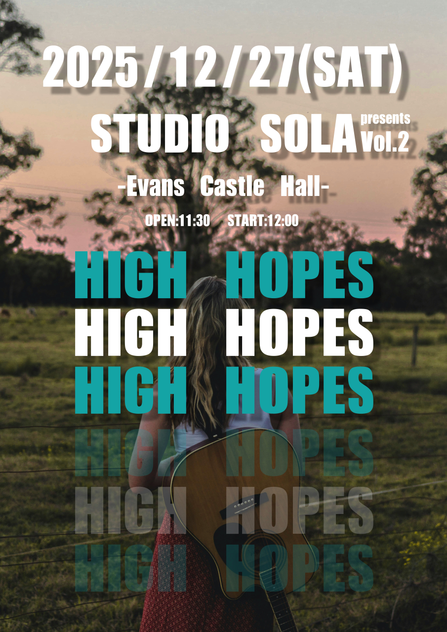 ![]() | 一年間の集大成のイベントです 2025.12.27(Sat) StudioSola pre. HIGH HOPES Vol.2 at EVANS CASTLE HALL |